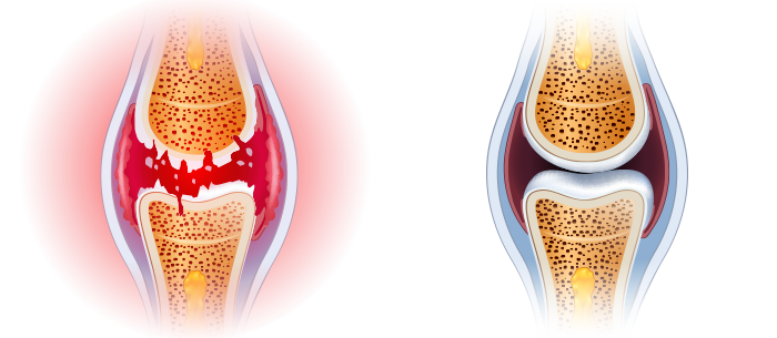 Un'articolazione malata attaccata dalla degenerazione e dal dolore